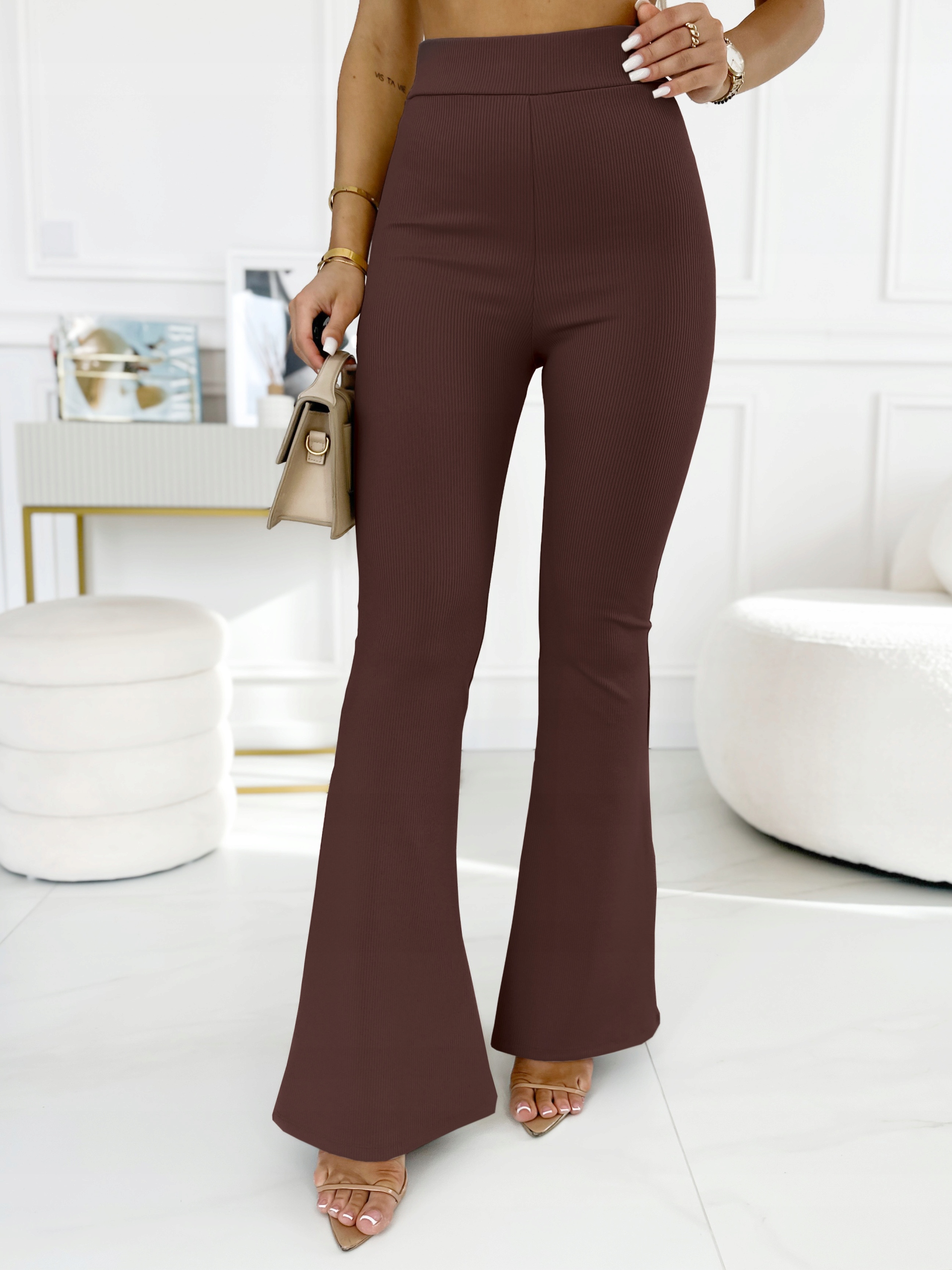 Удобные женские БРЮКИ в рубчик, расклешенные, эластичные шоколадного цвета