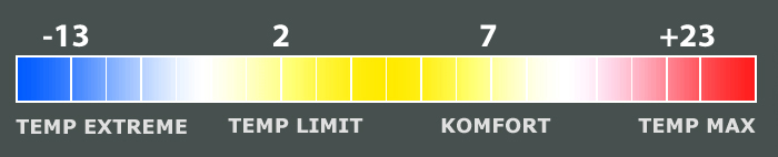 - Temp Komfort Max 23 градуса - это верхняя граница комфорта, температура, при которой «стандартный мужчина» не потеет, а чрезмерная температура не нарушает его сон (конечно, температуру Max можно регулировать, расстегнув спальный мешок)