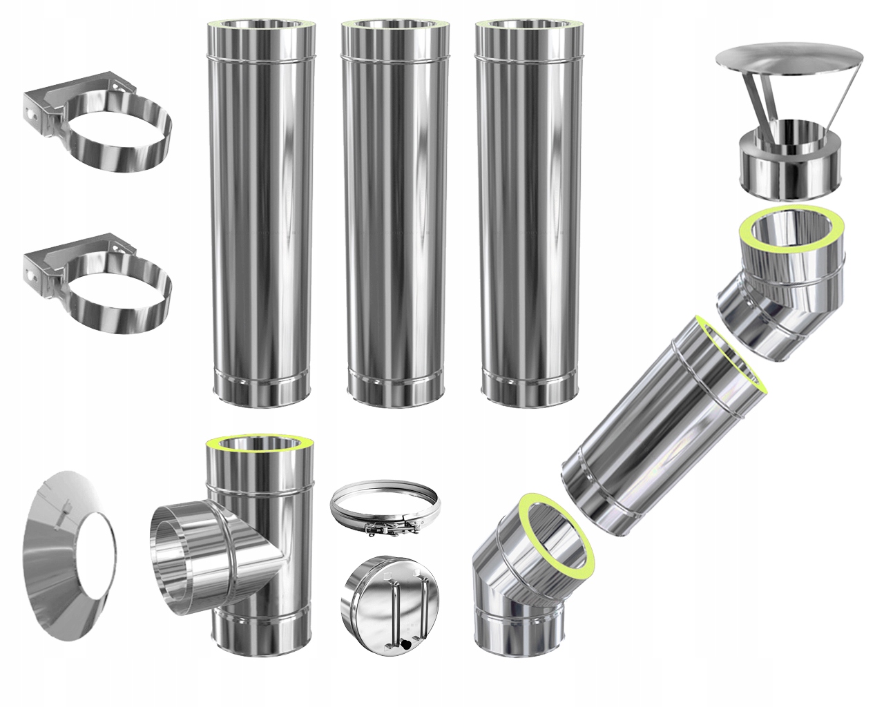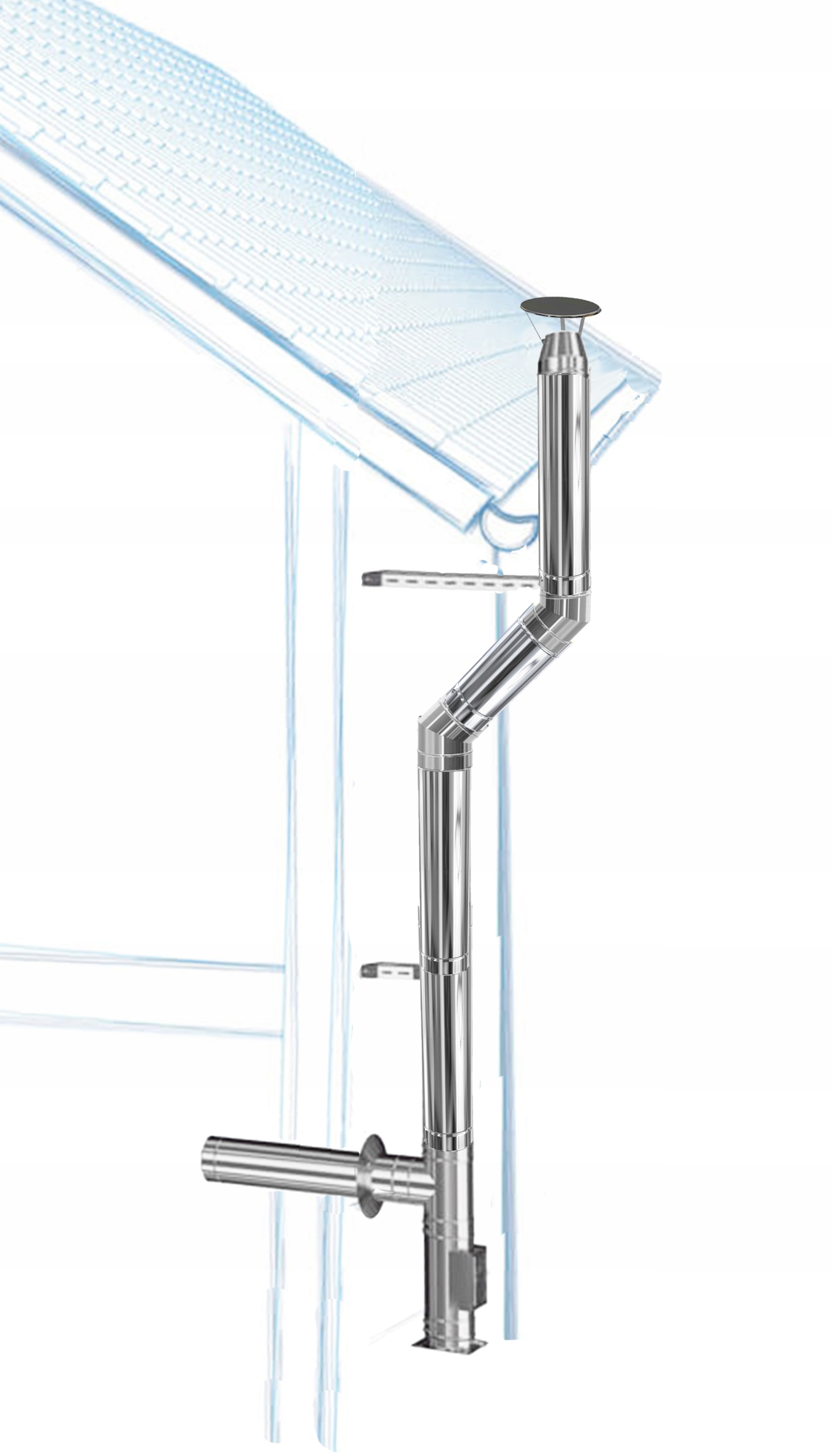 КОМПЛЕКТ НАРУЖНОГО ДЫМОХОДА ДВУСТЕННЫЙ ИЗОЛИРОВАННЫЙ, КИСЛОТОСТОЙКАЯ И ЖАРОСТОЙКАЯ СТАЛЬ, диаметр 120 / 4 м
