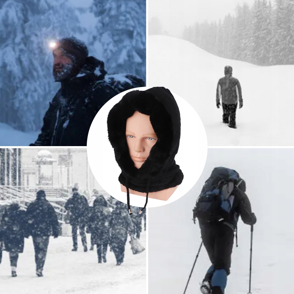 KOMINIARKA DAMSKA CZAPKA KAPTUR MASKA NA ZIMĘ CIEPŁA PLUSZOWA CZARNY
