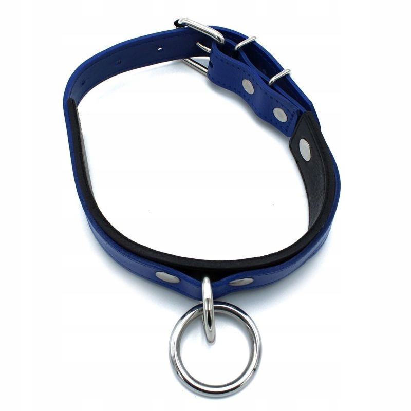 Стильный сине-черный кожаный воротник с большим кольцом для соединения поводка, цепей и других аксессуаров. Это соответствует различным случаям, как в качестве ежедневного добавления или для игры.