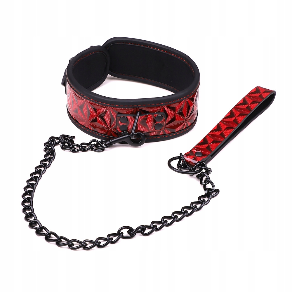Декоративный ошейник с металлическим поводком – потрясающий эротический гаджет для любителей БДСМ. Изящный ошейник в сочетании с поводком позволяет взять под контроль другого человека. Если вы хотите ощутить элемент доминирования в постели, эта секс-игрушка отлично подойдет. Воротник регулируется, его обхват можно подогнать под обхват шеи. Этот эротический гаджет выполнен из эко-кожи высочайшего качества, с красивым бордовым декором с одной стороны и черной, гладкой и приятной на ощупь экокожей с внутренней стороны.