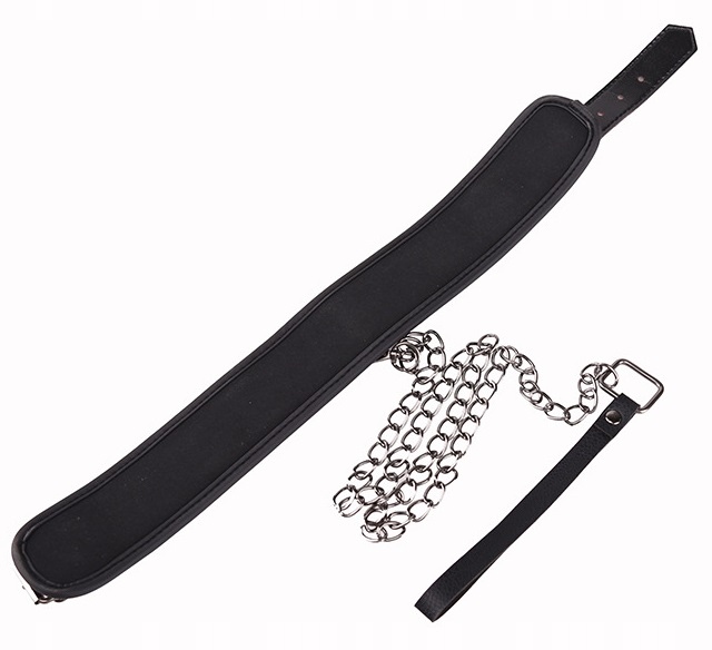 Шейный ошейник с металлическим поводком БДСМ