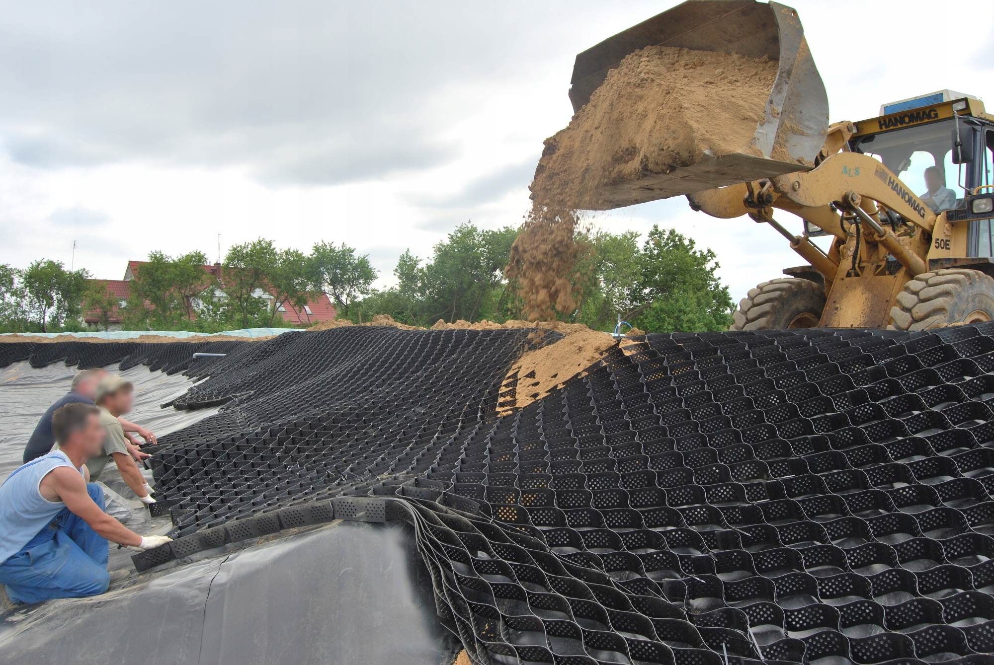 Ячеистая георешетка – изделие, решающее проблему плохой несущей способности родного грунта. Он работает за счет уменьшения вертикальных напряжений за счет создания основания, которое ведет себя как полужесткая плита.