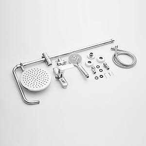 ⭐ Comitrio Spray Set с дождевым душем, колонна для душа с механической батареей, набор спрей, регулируемая высота, хром ⭐