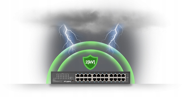 Заботясь о безопасности устройств и их пользователей, компания Lanberg оснастила коммутатор встроенной системой защиты от разряда, обеспечивающей защиту 2 кВ для всех портов и эффективно снижающую их повреждение из-за внезапного повышения напряжения.