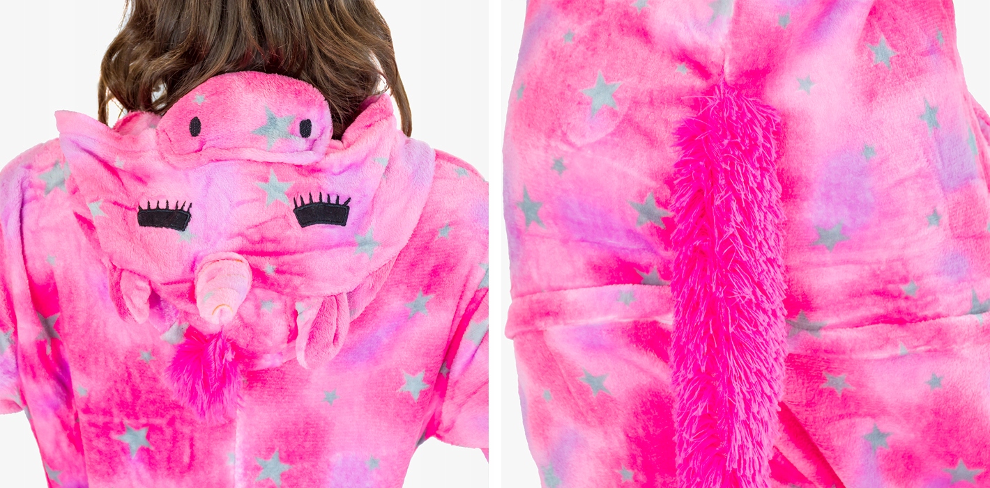 Комбинезон оценят те, кто ищет комфорт и функциональность. Свободный крой не сковывает движений. Манжеты на щиколотках и запястьях придают образу аккуратный вид и не мешают повседневной деятельности. Их легко надевать и снимать, а также они закрывают все тело, поэтому вам не придется беспокоиться о том, что открытая спина замерзнет во время сна. Ткань SuperSoft Premium Microfiber, из которой изготовлена пижама, очень теплая и приятная на ощупь, и в то же время дышащая и устойчивая к повреждениям