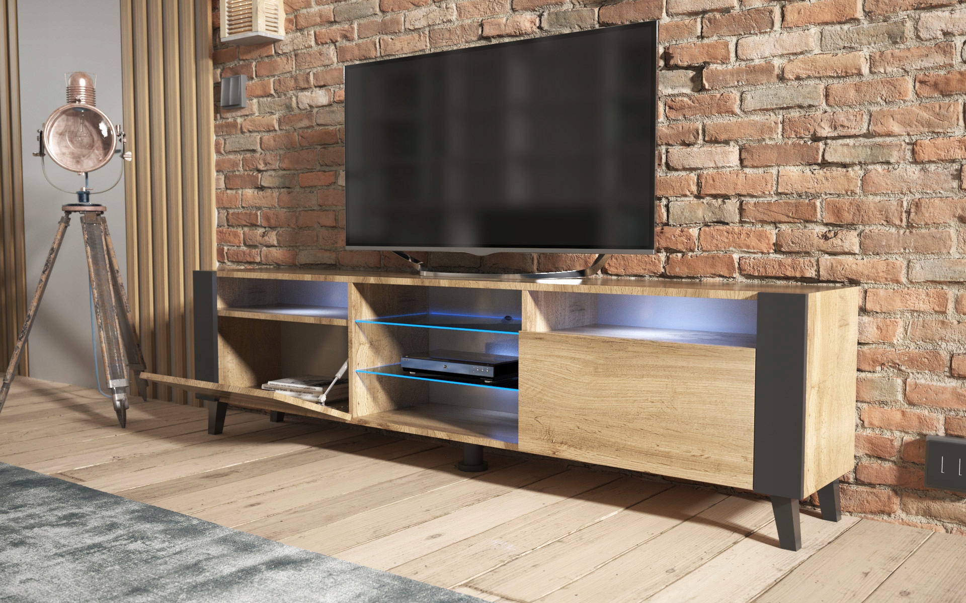 Комод, полка, тумба под ТВ LOFT 200 см, дуб wotan LED