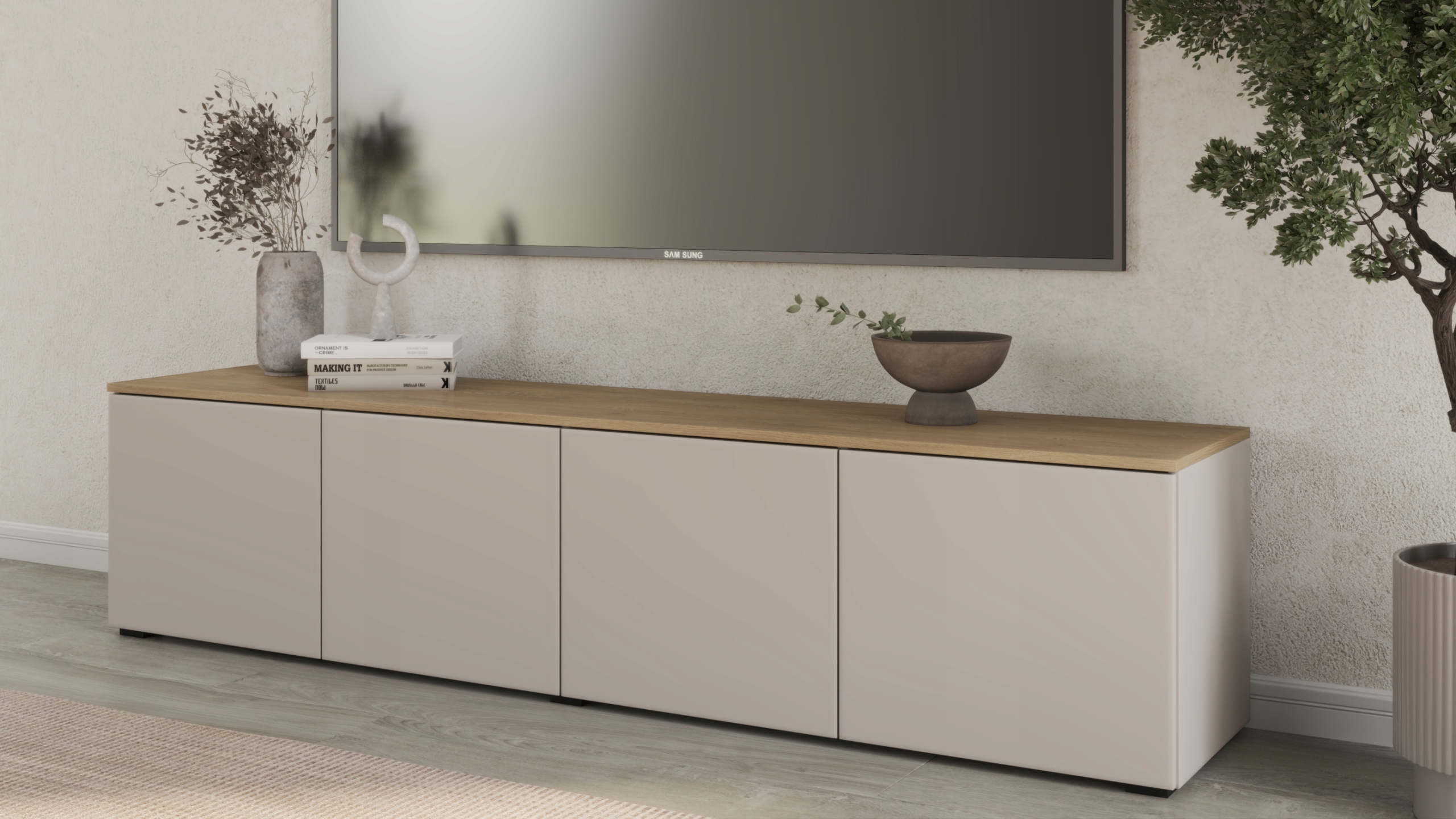 КОМОД, ШКАФ ПОД ТЕЛЕВИЗОР 200 СМ ТОП КРЕМОН / КАШЕМИР ВЫСОКИЙ СОВРЕМЕННЫЙ