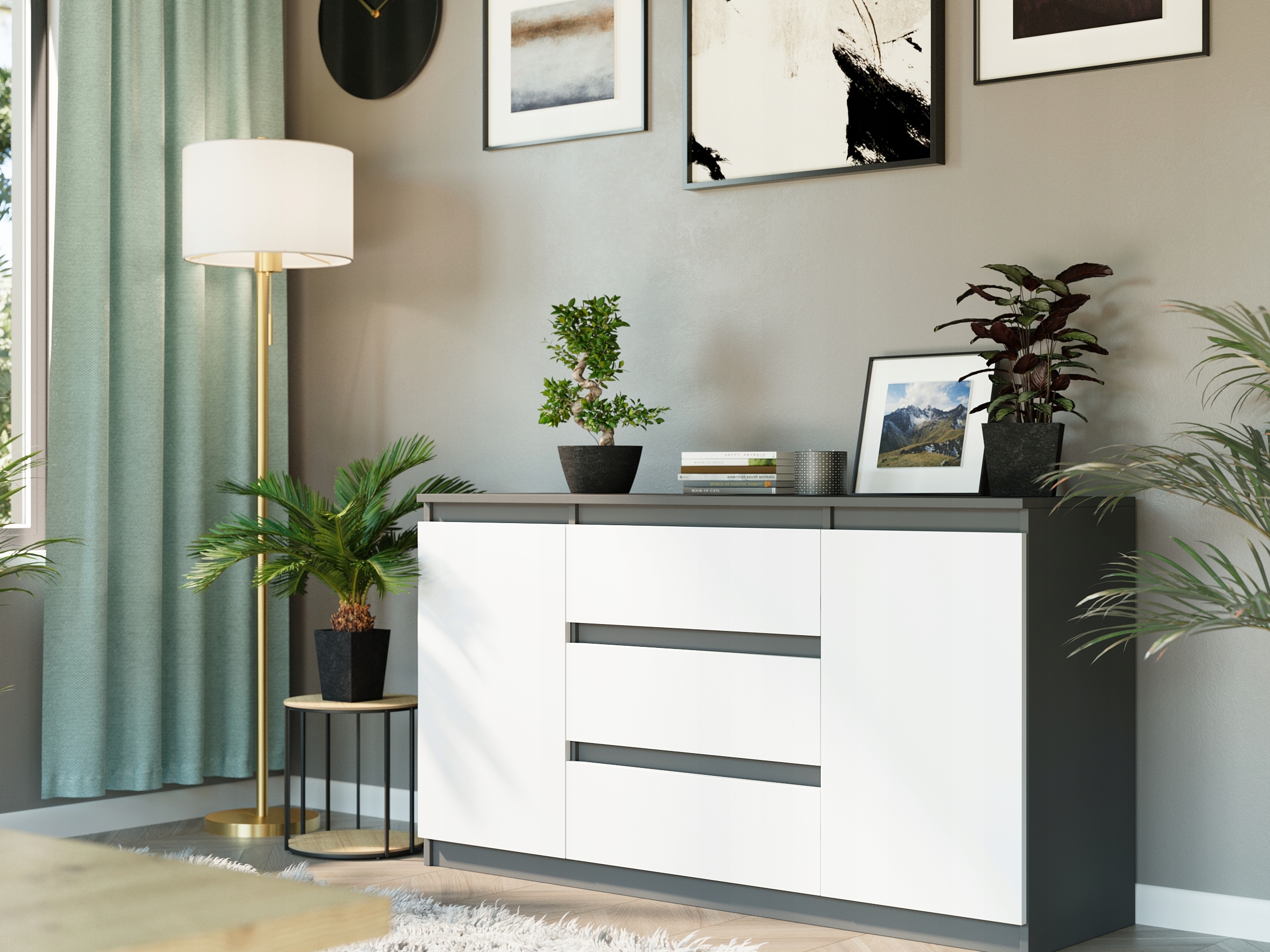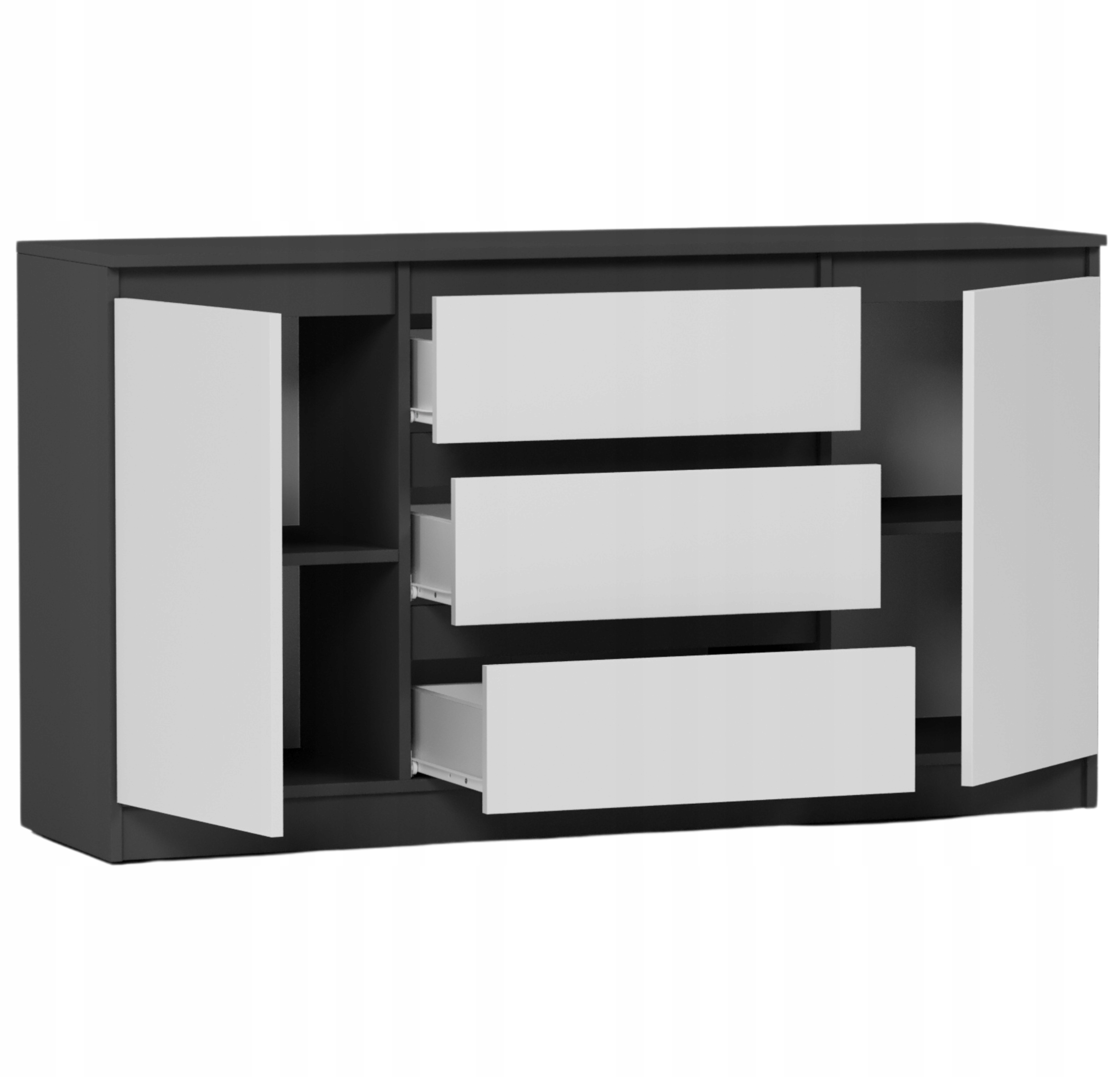 КОМОД 140 ШАФА 3 ЯЩИКИ 2 ПОЛИЦІ АНТРАЦИТОВИЙ мікс БІЛИЙ R140S3
