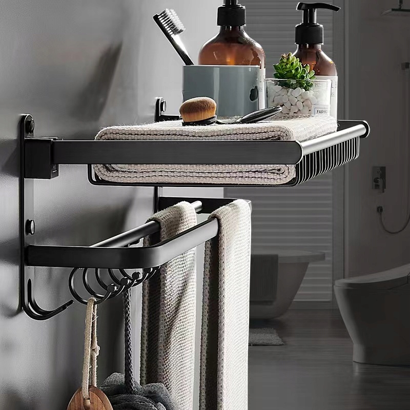 ❤️Наш продукт — идеальное решение для тех, кто хочет совместить стиль, функциональность и экономию места в одном. Представляем черную сушилку для ванной комнаты с вешалками, полкой для полотенец и косметики – практичный инструмент, повышающий комфорт использования пространства ванной комнаты.❤️