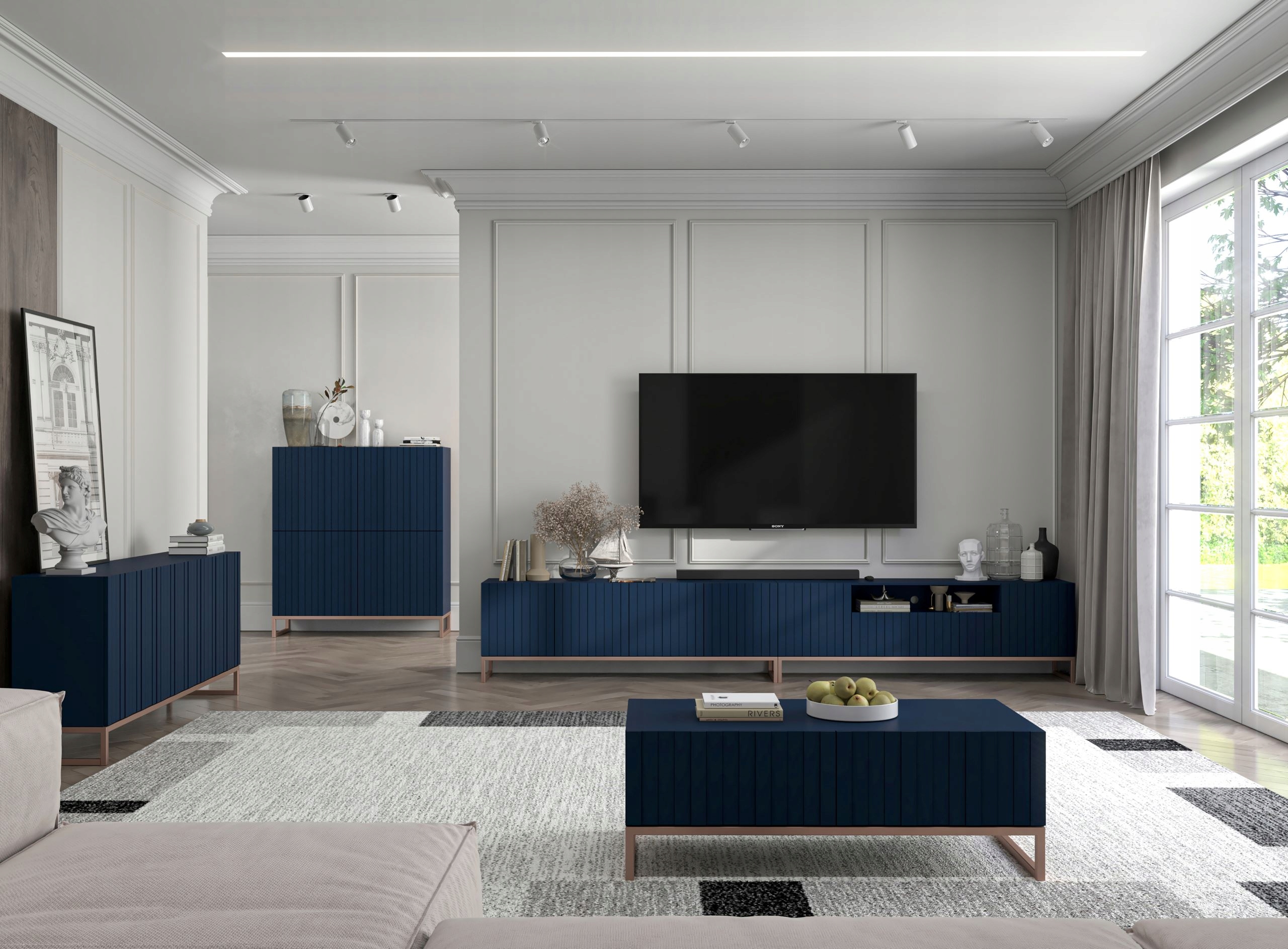 ТВ шкаф ELPIS 2, темно-синий матовый, 150 см