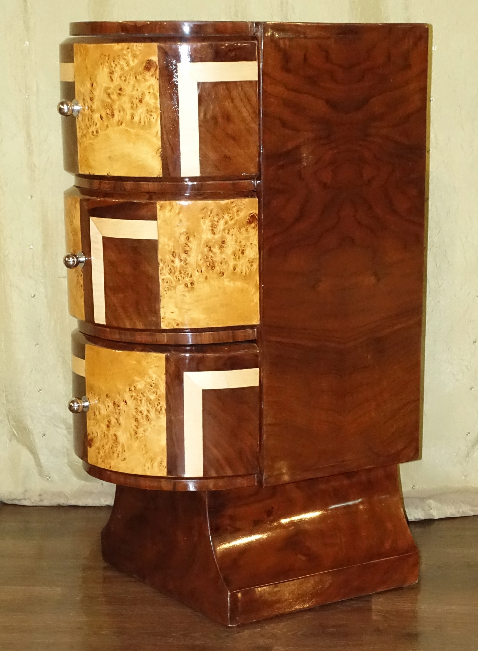 Стильный шкаф Art Deco h1> Мебель, сделанная из дерева сегодня, сохраняя при этом мебельное искусство и формы с начала прошлого века (Франция, 30-50). У этого есть три вместительных ящика и замечательные цвета от темного грецкого ореха до светло -желтоватого оттенка чечни. Руководитель с модернистским вдохновением объединил старые времена в форме; С современной отделкой, что означает, что мебель может быть легко отображается в стильных и современных интерьерах. Настоятельно рекомендую < /h1>