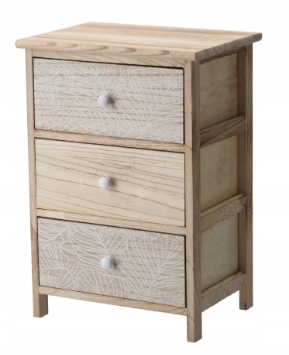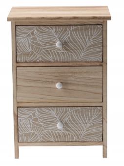 Комод LUIZA — это сочетание элегантности природы и практичного дизайна. Изготовленная из легкой, но прочной древесины павловнии, она восхищает своим натуральным оттенком и нежным мотивом листьев, что добавляет интерьеру уюта и экзотики. Идеально подходит для спальни, гостиной или холла – везде, где важен стиль и порядок