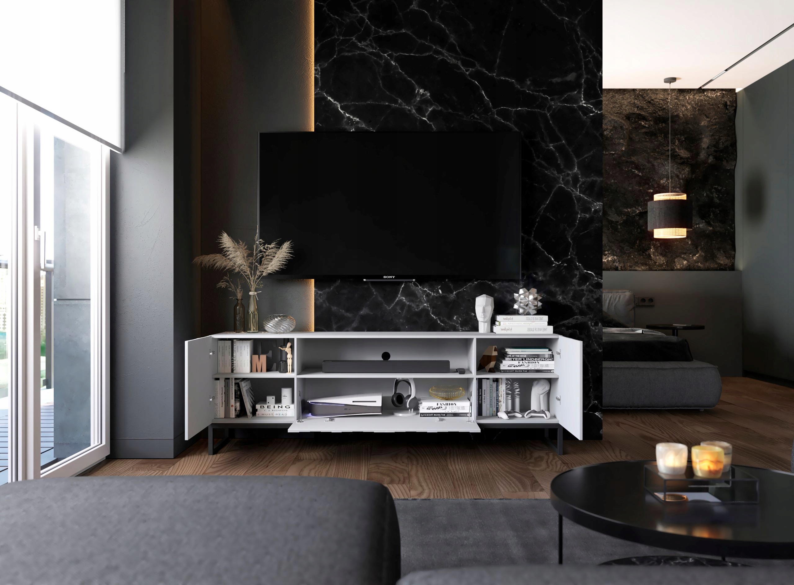 Komoda RTV Loft Szafka RTV Biały MAT Nowoczesna Czarna Rama 150 cm Glamour