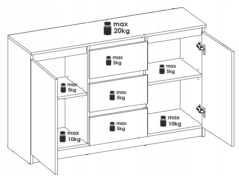 Комод COCO с 2 дверцами и 3 ящиками
