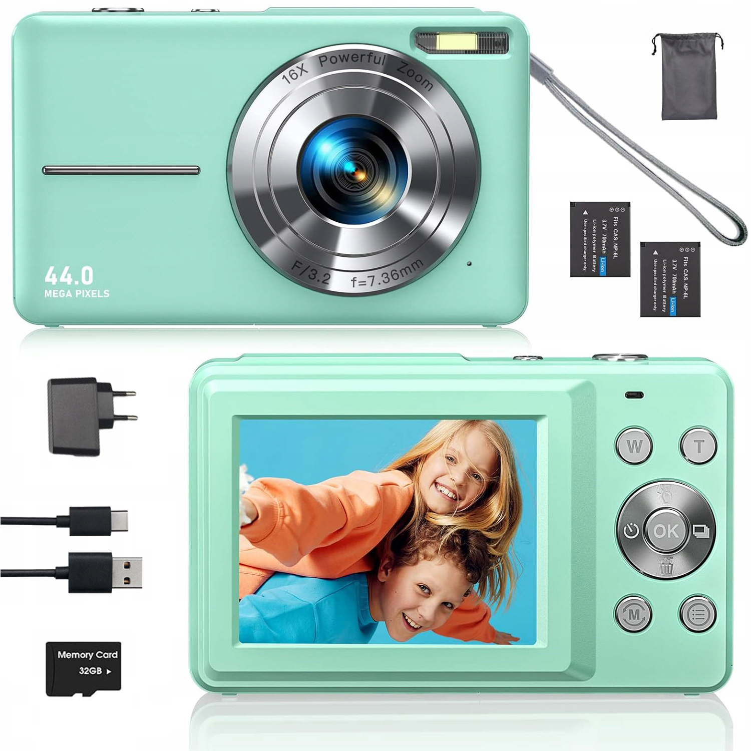 КОМПАКТНА ЦИФРОВА ФОТОКАМЕРА ДЛЯ ДІТЕЙ З 16-КРАТНИМ ЗУМОМ 1080P 44MP Зелений