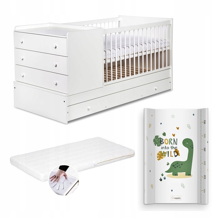 Кровать KLUPŚ-HEN 3-в-1 COMPACT + матрас Albero Mio + жесткий пеленальный столик Albero Mio