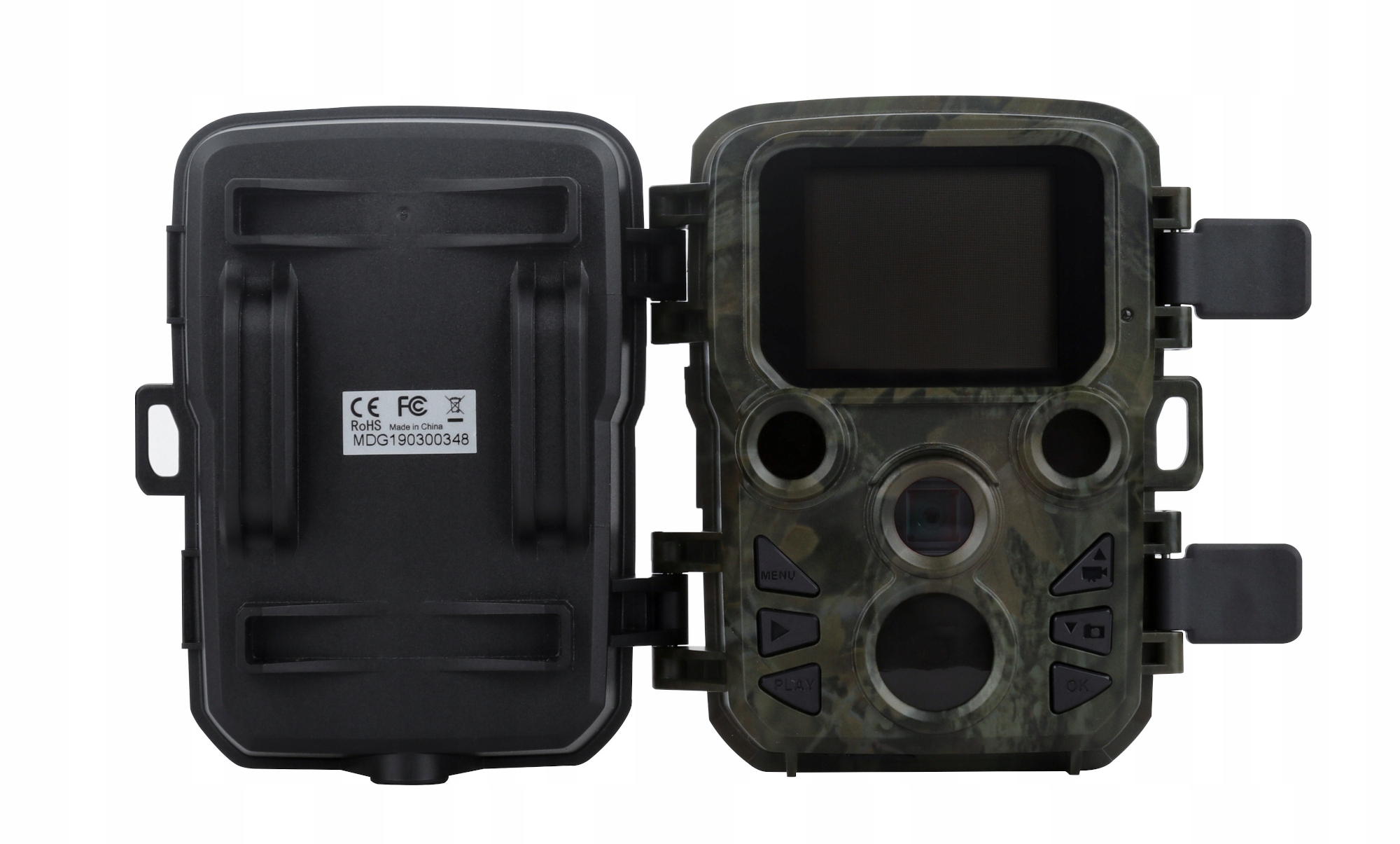 ИК-светодиоды не видны потенциальному злоумышленнику во время фотосъемки. А камуфляжный цвет делает фотоловушку практически незаметной.