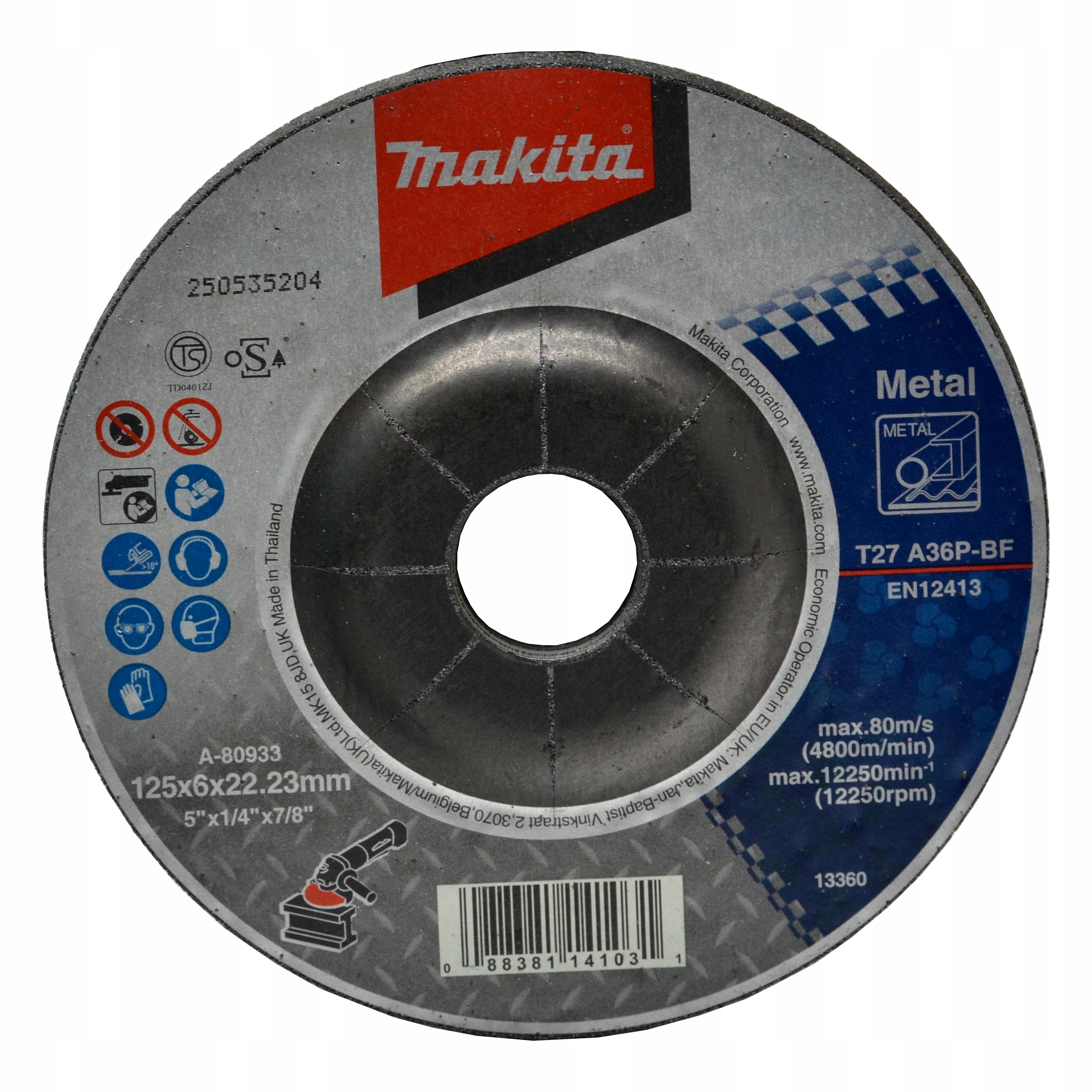- Диск шлифовальный по металлу 125 х 6 мм А. -80933