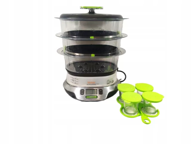 VitaCuisine Compact позволяет приготовить вкусный и сбалансированный обед из 3 блюд за один прием! Благодаря 3 чашам, 2 противням и 4 стеклянным контейнерам овощи, рыбу, мясо, фрукты и десерты можно приготовить за один простой прием. ЖК-дисплей и электронный таймер на 60 минут с функцией отключения прибора после приготовления делают использование прибора очень простым. Пароварка также имеет функцию отложенного запуска и поддержания тепла, а также автоматическое предупреждение о нехватке воды. При этом сверхкомпактное хранение (патент Tefal) возможно благодаря возможности вставки одной емкости в другую и размещения на основании пароварки.