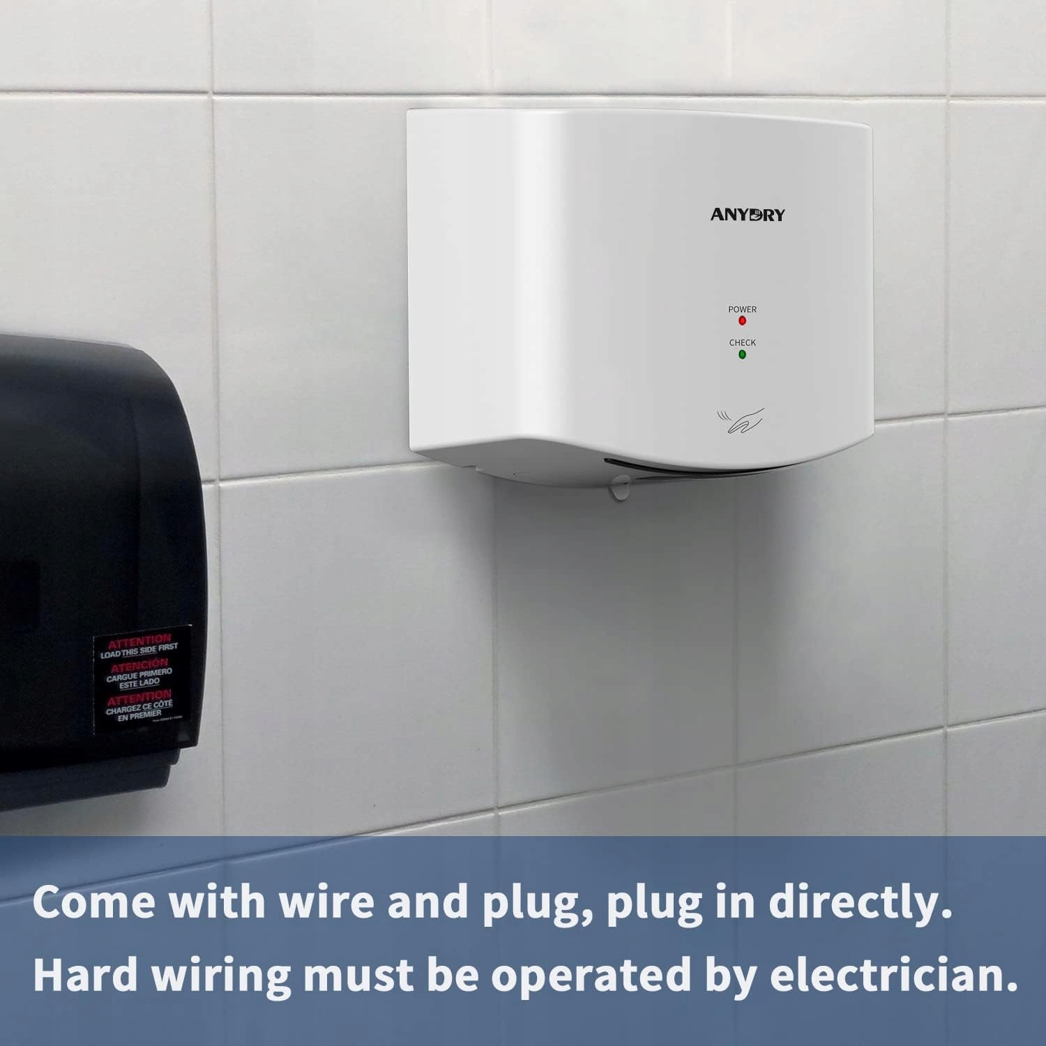 Компактная сушилка для рук Anydry 2630S, автоматическая электрическая сушилка для рук, настенная, для коммерческих или частных целей, 1400-1650 Вт, белая