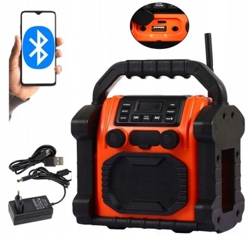 Компактне FM будівельне радіо 20W RMS bluetooth powerbank AUX LED IP55