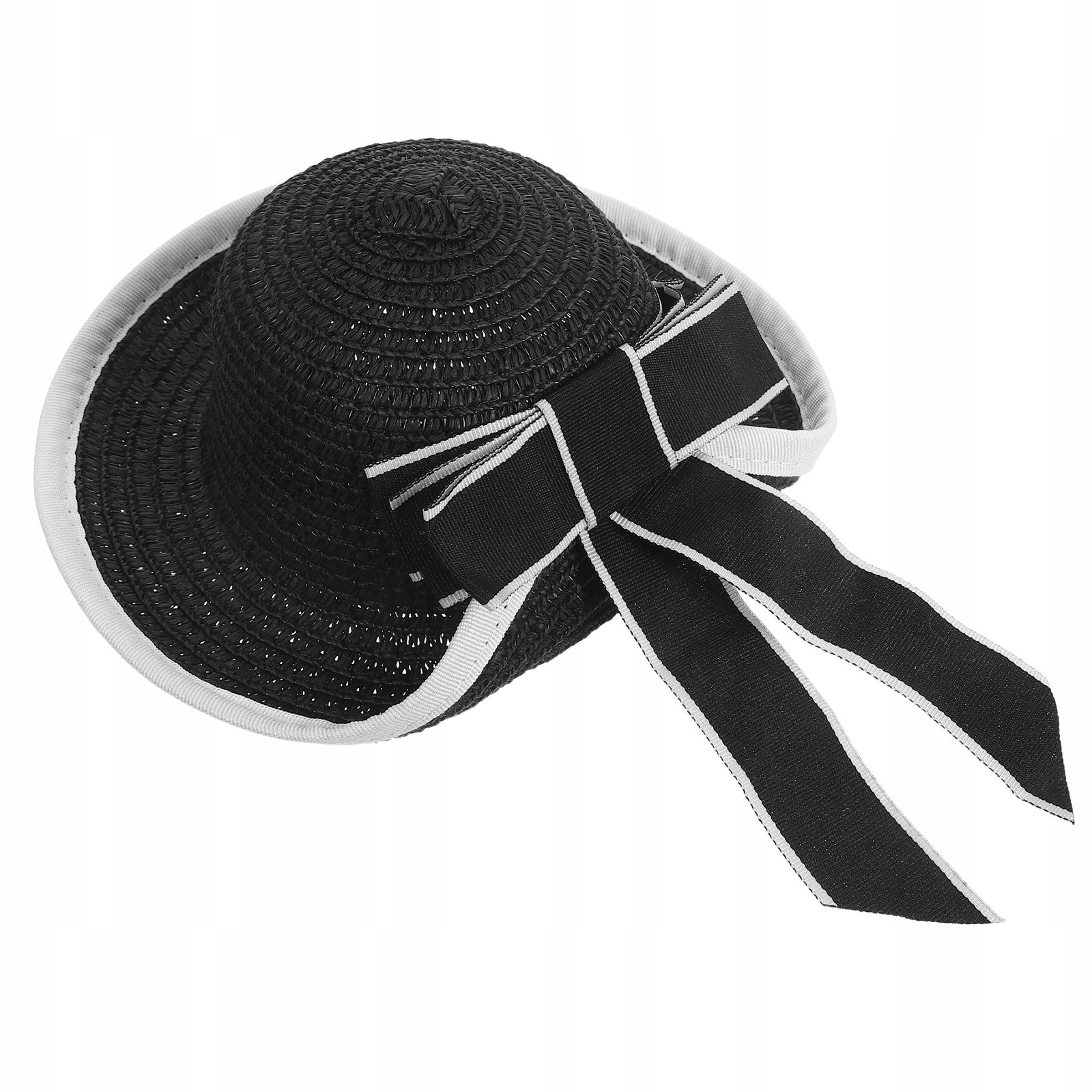 КОМПАКТНАЯ ЧЕРНАЯ СОЛОМЕННАЯ ШАПКА ДЛЯ КУКОЛ С КРУЖЕВНЫМИ ДЕТАЛЯМИ