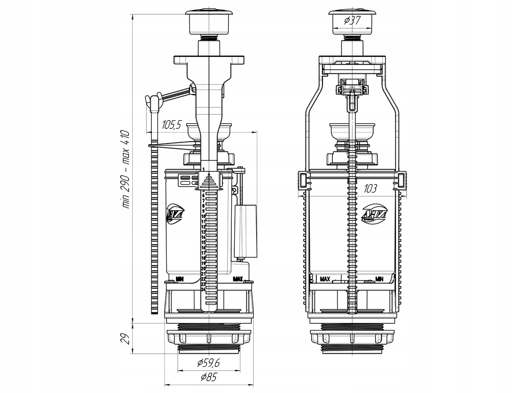 ✔️ Клапан регулируется по высоте от 290 мм - 410 мм