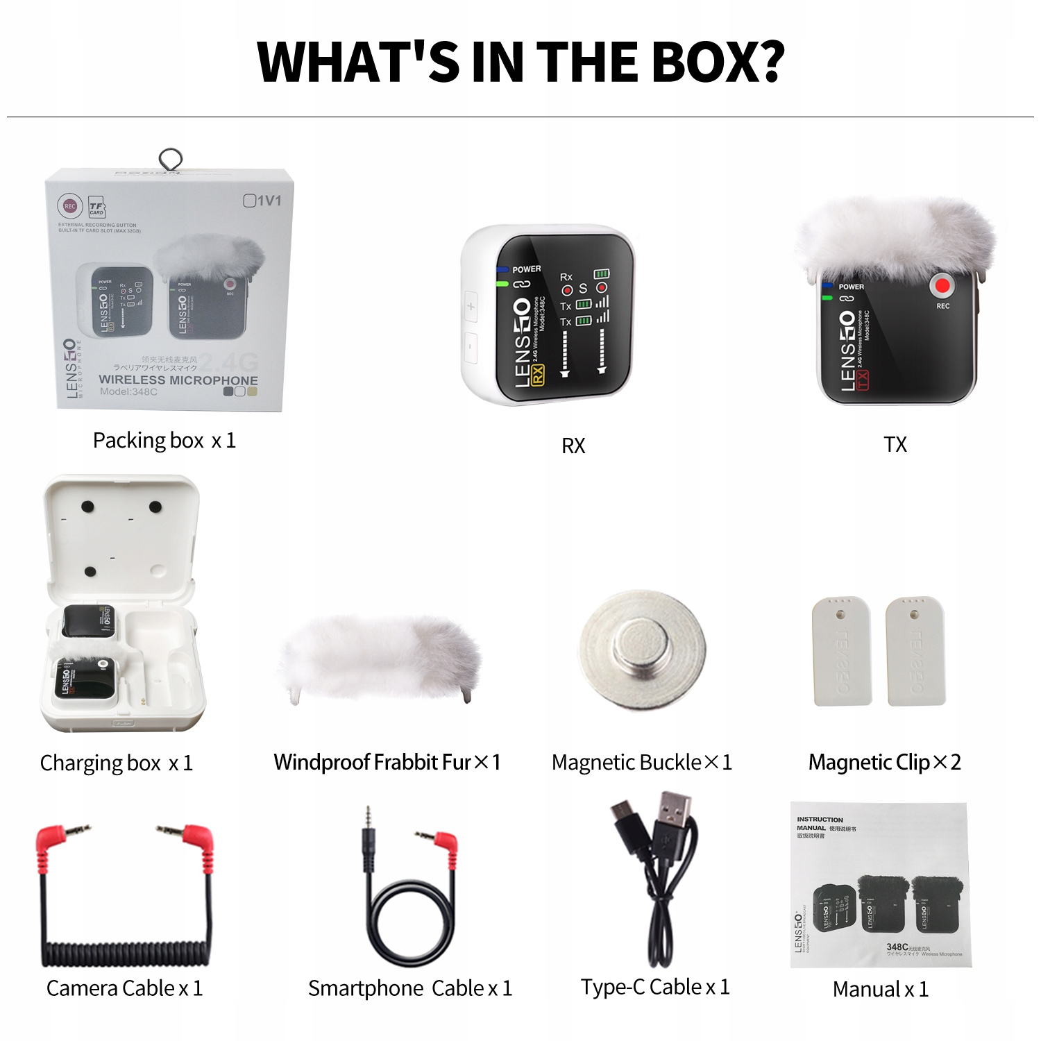 Беспроводной микрофон Lensgo348c Компактная цифровая система/рекордер с дополнительной кнопкой записи и встроенным магнитным зажимом (2,4 ГГц, белый)