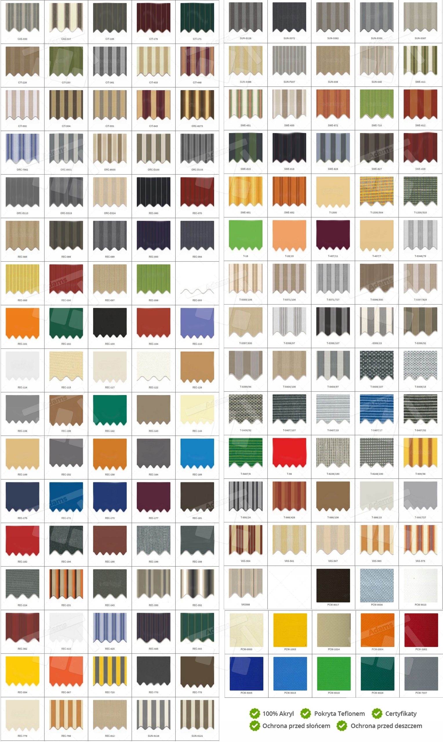Мы предлагаем вам более 100 различных цветов тканей b> (в полосках и один -колоран). Все ткани являются производством авторитетной европейской компании. сделаны из 100% акрила и покрыты тефлоновым агентом . Шаблон ткани ниже:
