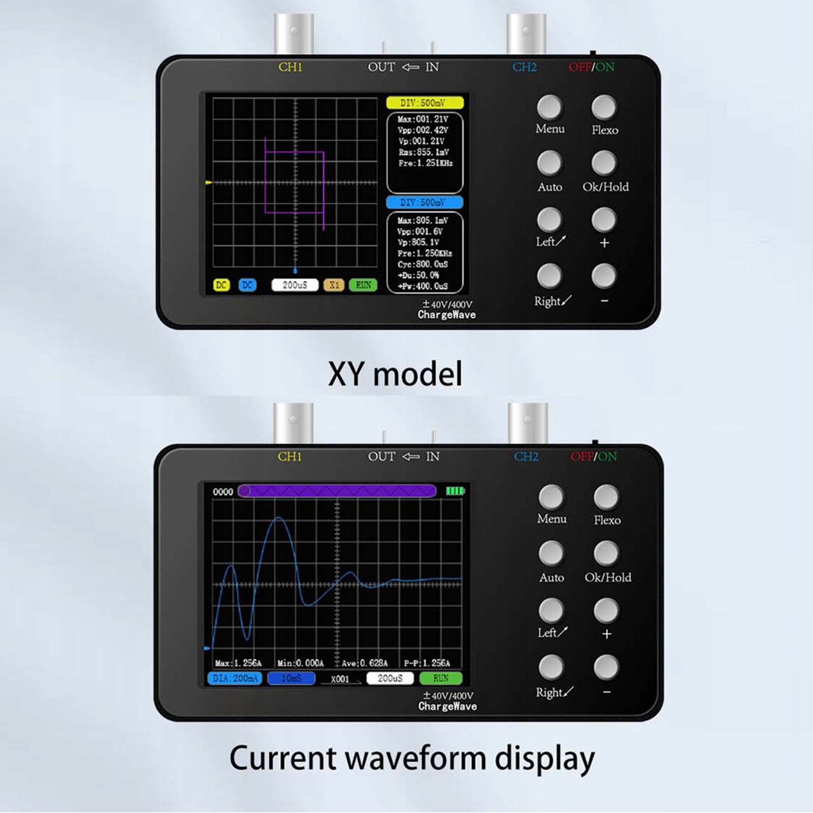 - Функция отображения измерения волны, 3,2-дюймовый ЖК-дисплей, разрешение 320*240, три режима отображения, можно легко настроить на режим двухканального осциллографа, модель XY и отображение формы сигнала.