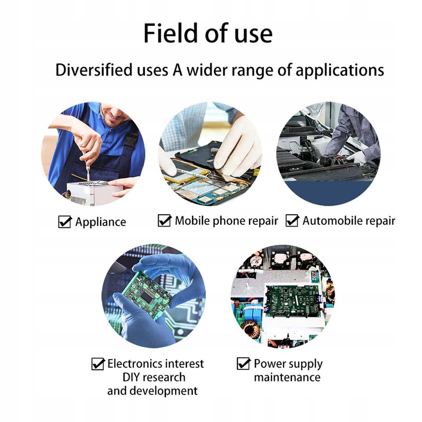 10. Разнообразное использование, применение в более широком диапазоне областей, ремонт бытовой техники, ремонт мобильных телефонов, ремонт автомобилей, научные исследования и разработки в области электроники, ремонт источников питания и так далее.