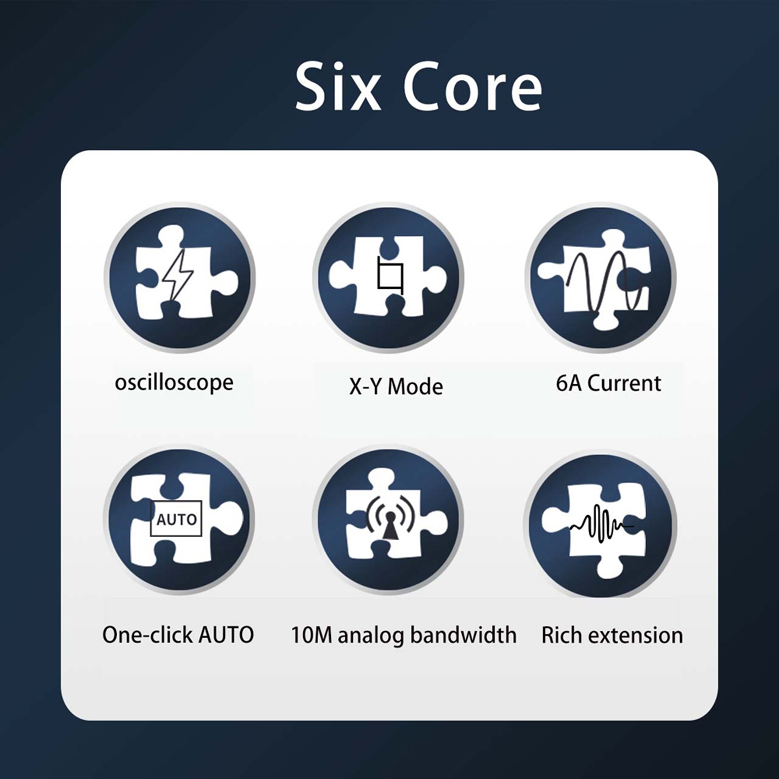 - Двухканальный осциллограф с частотой дискретизации 50 м, фактической полосой пропускания 2 МГц и аналоговой полосой пропускания 10 МГц. Благодаря полным функциям запуска (одиночный, нормальный, автоматический) можно свободно использовать как периодические аналоговые сигналы, так и непериодические цифровые сигналы. Функция отображения измерения формы сигнала, 3,2-дюймовый ЖК-дисплей, разрешение 320*240, три режима отображения, можно легко настроить на режим двухканального осциллографа, модель XY и отображение текущей формы сигнала. Измерение формы сигнала тока 6 А, глубина хранения 20 КБ, расширение сжатия волны. С несколькими функциями расширения и поддержкой обновлений встроенного ПО.