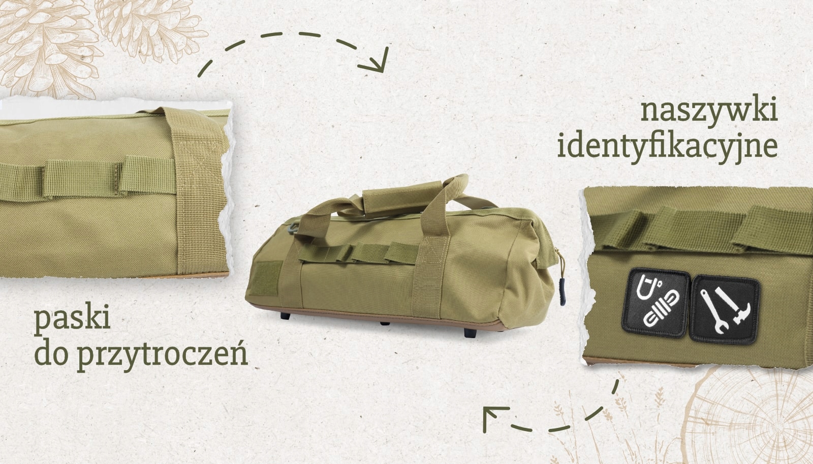Сумка дополнительно имеет ремень Molle, к которому мы прикрепим дополнительные саше или объекты. Кроме того, пластиковые ноги и два пластиковых D. В стандарте к мешкам добавляют патчи с интернацией. Прицел соответствующий идентификатор или напишите, что находится в данной сумке.