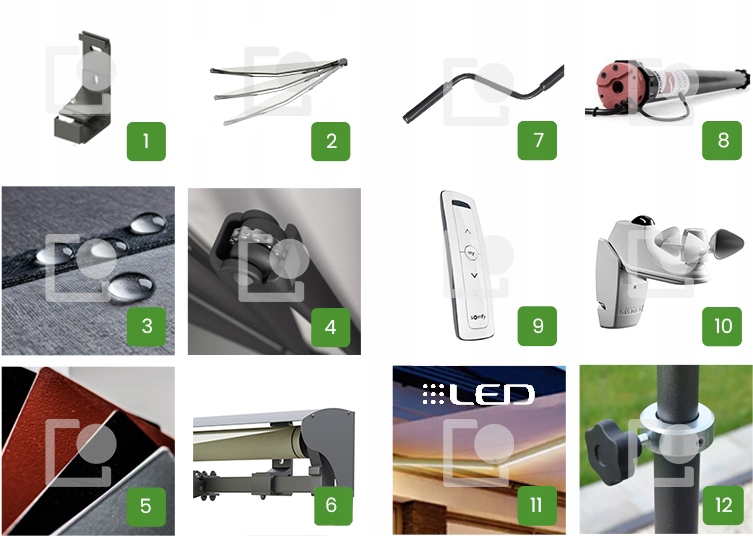 alt Ямайская терраса. Его дизайн обеспечивает длительный срок службы в условиях интенсивного использования, поэтому он является идеальным выбором для больших террас и коммерческих установок. Навеса сгибания монтируется на алюминиевых ручках со специальной конструкцией, изготовленной с использованием метода численной обработки. Использование цепочки флаеров в сочетании с точностью суставных суставов при проектировании рук мазрилера обеспечивает надежную, многолетнее действие. Благодаря центральной поддержке извилистой трубы, даже в больших навесах всегда есть равномерно плотная ткань. Конструкция основана на квадратном луче, что дает некоторую свободу при выборе места наложения ручек и делает навес очень прост в установке. Дополнительная алюминиевая крыша обеспечивает свернутую крышку. Дизайн навеса изготовлен из алюминия и лакированной техники порошка в нескольких стандартных цветах. Для навеса мы можем необязательно установить электрический привод с автоматизацией и светодиодным освещением и передней телескопической поддержкой.
