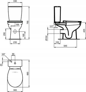 Компактный унитаз 36,5х66х79 см с функцией биде, горизонтальным сливом, белый Ideal Standard Eurovit