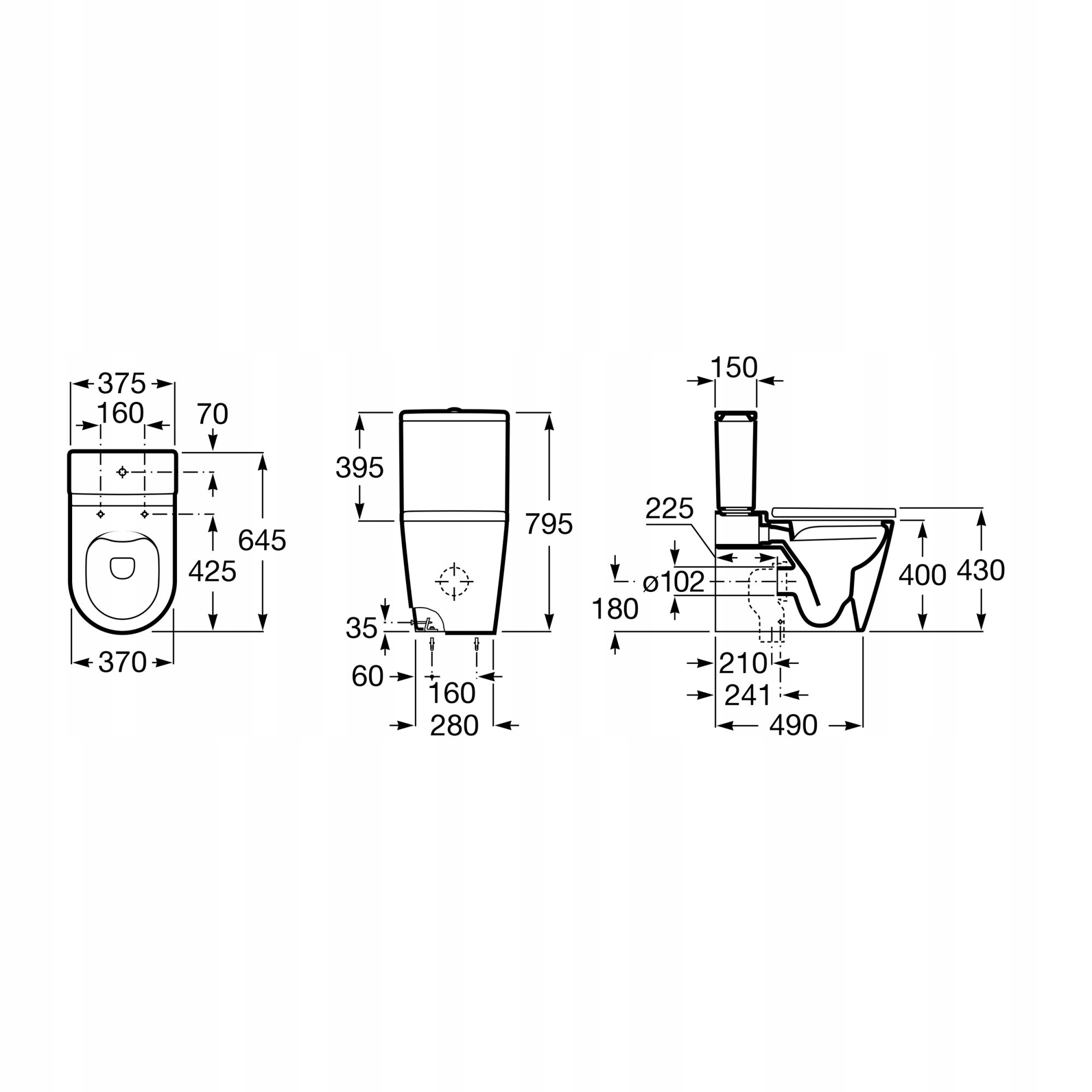КОМПАКТНЫЙ УНИТАЗ БЕЗОБОДКИ, БЕЛЫЙ ROCA INSPIRA КРУГЛЫЙ