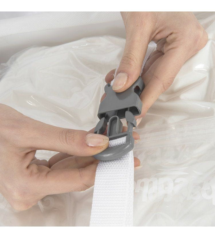 Текстиль, хранящийся в ящике для хранения уплотнителя, экономит 75% места. Внутренний мешок изготовлен из полимера с памятью формы, благодаря которому он возвращается к исходной форме при повторном поступлении воздуха.