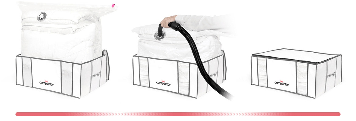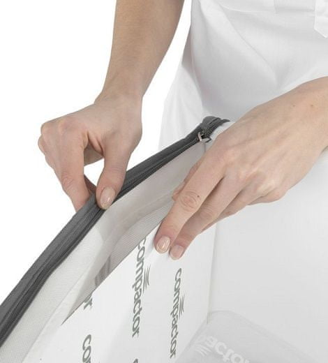 Вакуумный бокс Compactor 100% герметичен и имеет надежную пластиковую молнию с бегунком. Очень прочный нейлон и полиэтилен, из которых изготовлены сумки, также играют роль в превосходной защите.