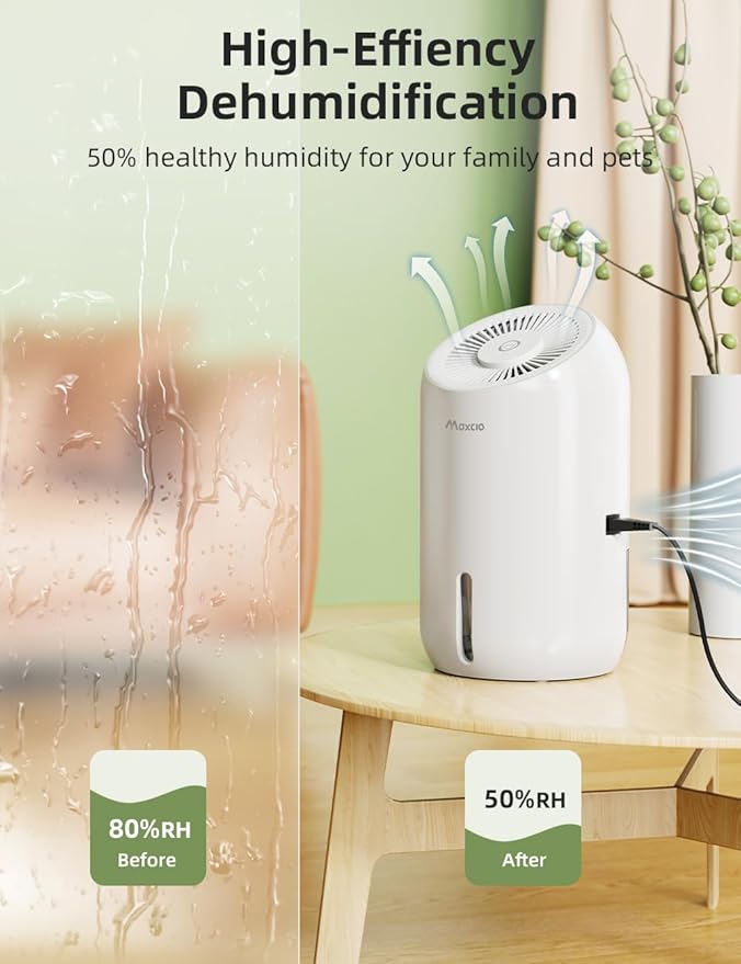Kompaktowy Osuszacz Powietrza 860ml Maxcio – Cichy i Energooszczędny, LED