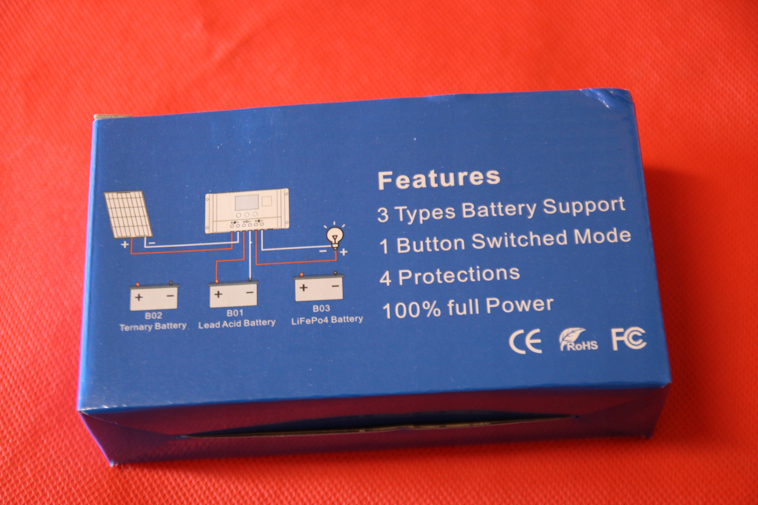 - Защита от перегрузки, короткого замыкания, повышенного напряжения, пониженного напряжения, от перезаряда/разряда аккумулятора, от обратной полярности