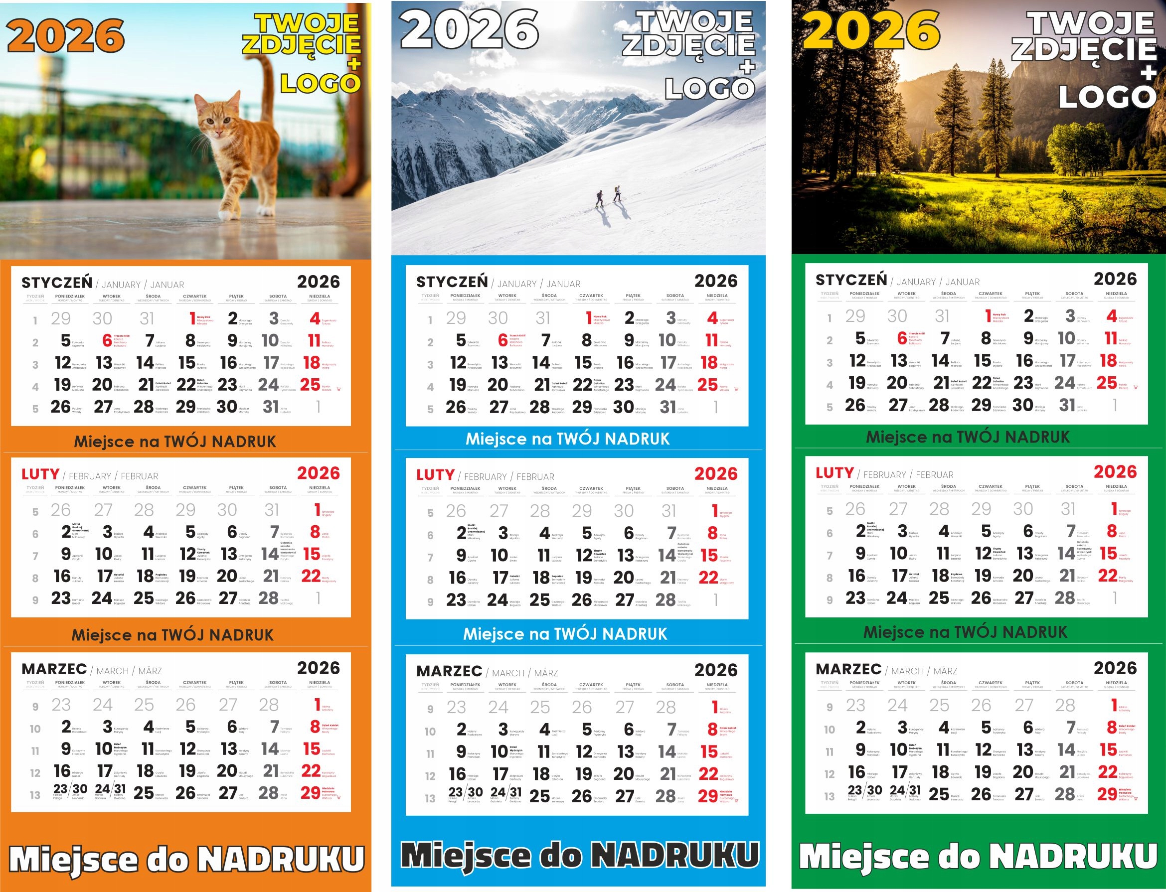 Среди других наших предложений вы можете купить службу проекта тройного календаря. Такой проект можно использовать при печати календари, приобретенных в этом предложении. мы обслуживаем наших клиентов всесторонне - от проекта до печати.