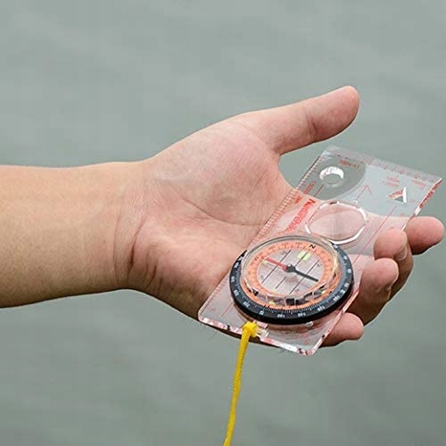 Картографический компас – надежный навигационный инструмент, который можно использовать во многих местах по всему миру. Удобен в использовании и транспортировке благодаря небольшим размерам. Для его использования нам не нужны ни батарейки, ни источник питания, отсюда и его надежность в сложных условиях. Независимо от погодных условий, времени дня и ночи, мы можем использовать его, чтобы выбрать направление, в котором хотим двигаться. Он оснащен флуоресцентной магнитной стрелкой, которая позволяет ориентироваться даже в темноте. Практичные масштабы облегчат работу с картой.