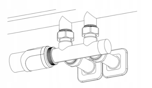 Подключение предназначено для декоративных радиаторов и радиаторов для ванных комнат с нижним подключением и патрубками с шагом 50 мм.