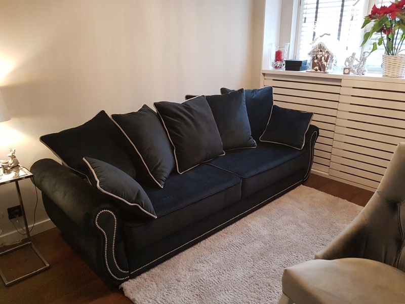 Представленный аукцион по цене 5900 злотых касается 3-местного дивана со спальной функцией (5+2 подушки), кресла Uzak со стеганой спинкой на пуговицах, стильными деревянными ножками и открывающимся пуфом с местом для хранения вещей. Весь комплект выполнен из красивого оригинального плюша из коллекции CROWN VELVET, отделан декоративной лентой с обивочными булавками. Коллекция Crown Velvet предлагает на выбор широкий выбор красивых и уникальных цветов ткани. Ткань Crown Velvet легко чистится и обладает очень высокой стойкостью к истиранию. Это ткань верхней полки.