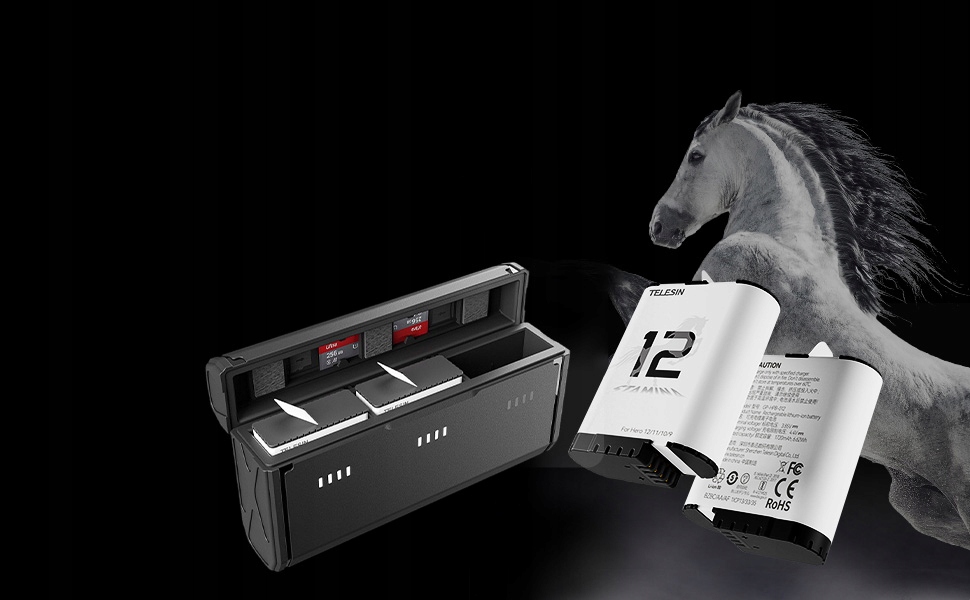 Поддерживает быструю зарядку — 65 % за 30 минут и полную зарядку за 80 минут. Зарядный футляр имеет 3 слота для одновременной зарядки до 3 батарей и обеспечивает множество защит, таких как перезарядка, чрезмерная разрядка, защита от короткого замыкания и термического удара.