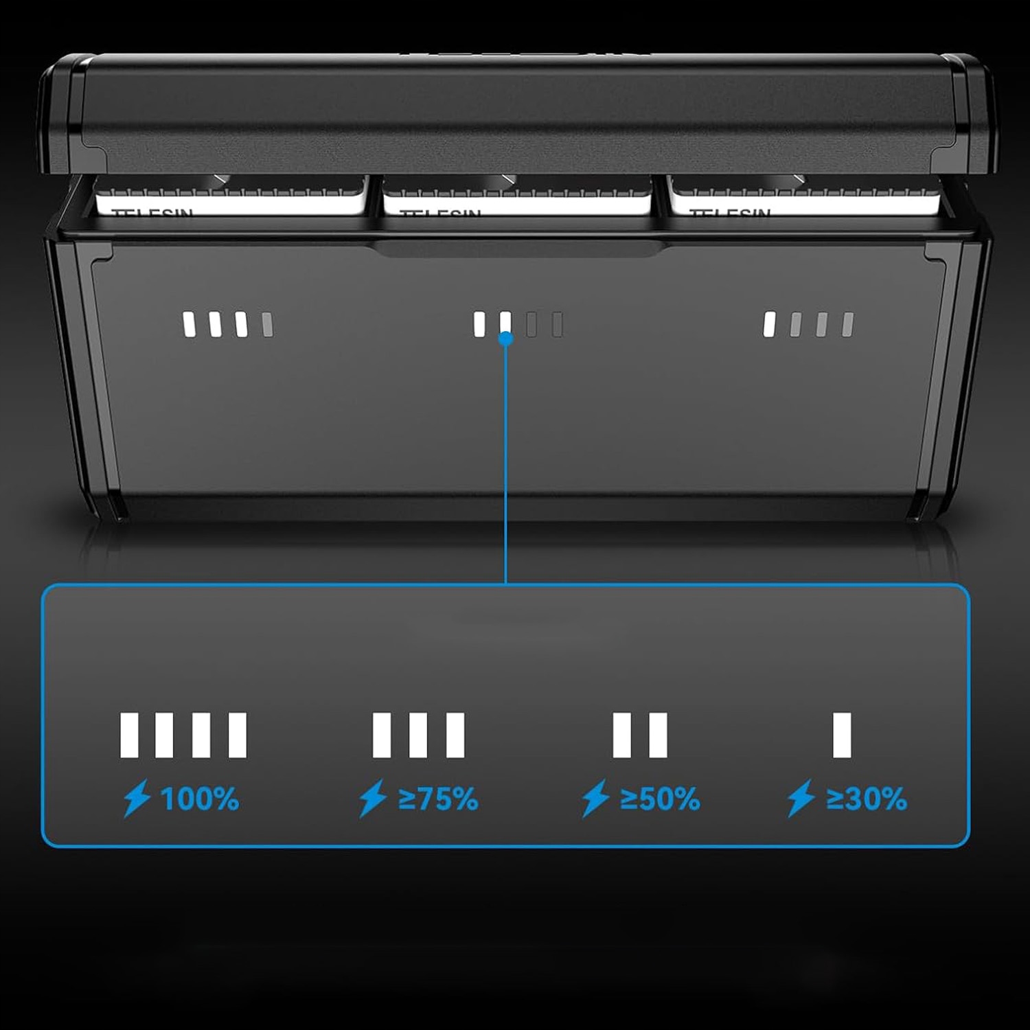 ⚡- Зарядный футляр имеет 3 гнезда и поддерживает зарядку 3 аккумуляторов. одновременно.
