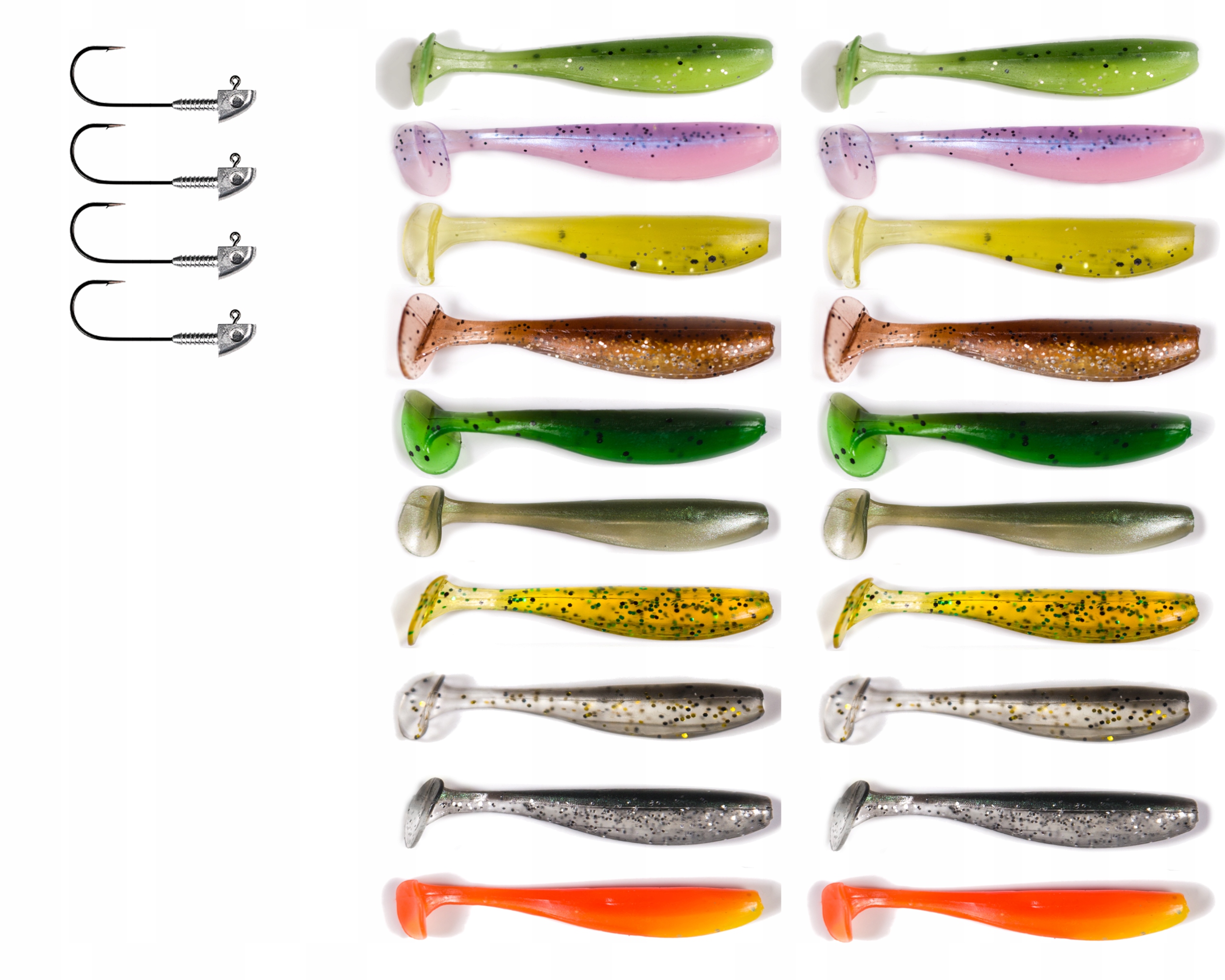 Идеален приманки в основном на окуня, судака и щуку. Идеальный размер, изысканная расцветка, подходит для ловли любым способом спиннинга - классический, дропшоп, боковая планка, так что можно сказать, что это набор для всех хищников. Широкая цветовая гамма позволяет ловить рыбу во всех типах водоемов в Польше и за ее пределами: от прудов, озер до рек. Идеальный набор как для начинающих, так и для профессиональных спиннингистов.