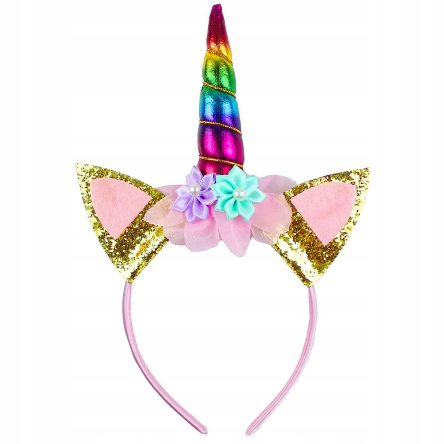 ✅ Повязка на голову: универсальный размер с золотыми ушками и переливающимся радужным рогом.